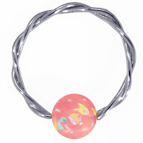 14G 3/4" Pink Opal Solid 14kt White Gold Twisted Captive Overviews
