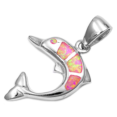 Sterling Silver Pink Lab Opal Dophin Pendant Overviews