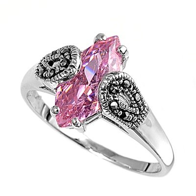 Sterling Silver Marcasite Rings with Pink CZ - Sizes: 5-9 Overview