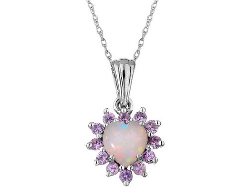 Opal and Pink Sapphire Heart Pendant 1/2 Carat (ctw) in 10K White gold with Chain Overview