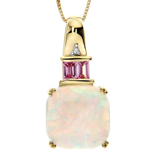 Sterling Silver Cushion Cut Created Opal, Created Pink Sapphire and Diamond Pendant (0.005 cttw, I-J Color, I2-I3 Clarity), 18"